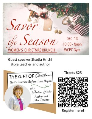 Shadia will share an inspiring message at this Women’s Christmas Brunch, where the women will enjoy a precious time of food, fun, and fellowship—hosted by the Walnut Creek Presbyterian Church.